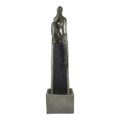Waterornament Zagreb is een stijlvolle terrasfontein met een hoogte van 151cm. Hij is gemaakt van polystone, hard kunststof, en bestaat uit een stonelook pilaar met daarop een zittend persoon. Het beeld bovenop lijkt op hardsteen met gladde, donkergrijze afwerking. De pilaar is grijs van kleur en heeft een ruwere afwerking. In het midden van de pilaar kabbelt het water naar beneden. Daarnaast zit er zowel aan de boven- als onderzijde een 6-LED bevestigd. Hierdoor geeft het waterornament extra sfeer in de avonduren.
